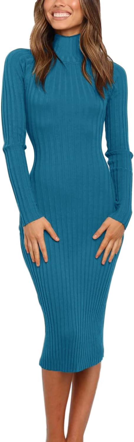 - Unique Design: Soild color, highly elasticity fabric, ruffles detail at neck, cuffs&hemline, midi knee length, soft and fine knit, bodycon sweater dresses