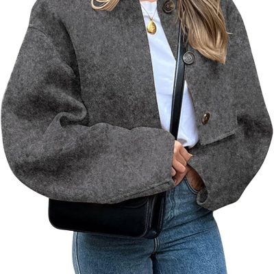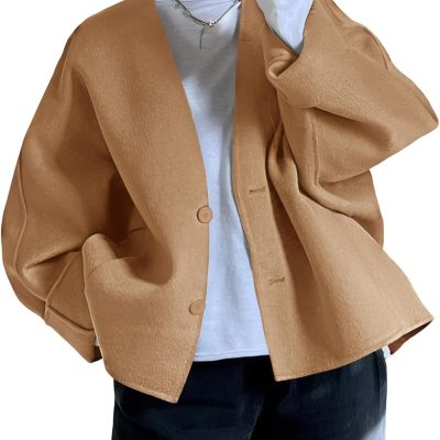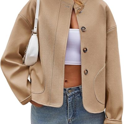 Women’s Casual Stand Collar Single Breasted Short Wool Pea Coat Overcoat with Pockets