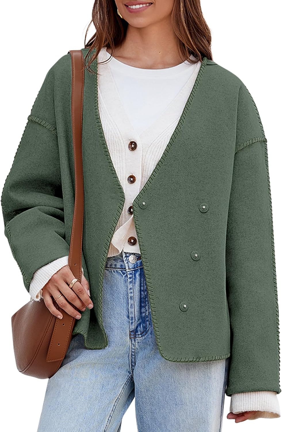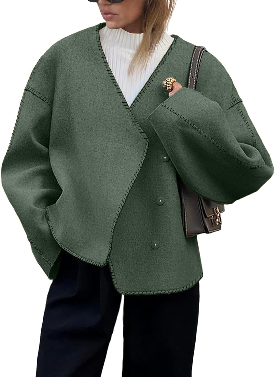 - Features: The fashion jackets feature a snap button, hidded button, stiching design, long sleeve, basic, solid color, v neck, loose fit style, short length, comfy leisure jackets. Classic and never go out, a must-have addition to your fall outfits
