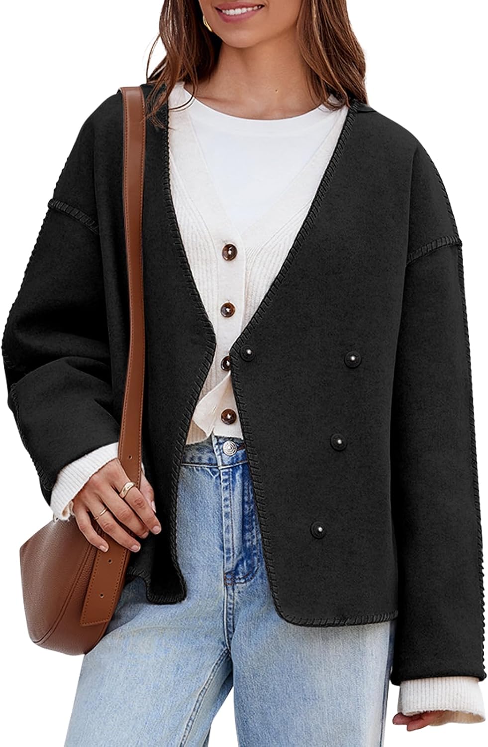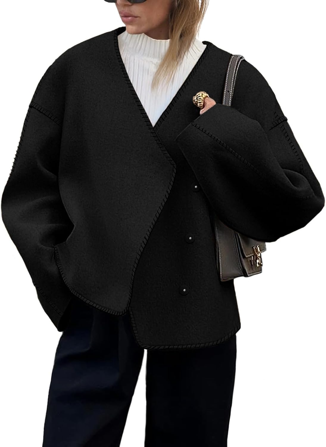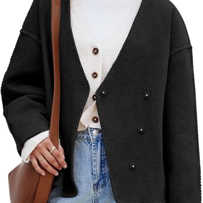 - Features: The fashion jackets feature a snap button, hidded button, stiching design, long sleeve, basic, solid color, v neck, loose fit style, short length, comfy leisure jackets. Classic and never go out, a must-have addition to your fall outfits