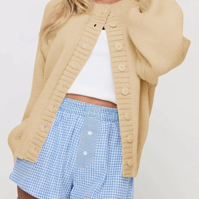 - Feature: Womens fall knit cardigan features long lantern sleeve, crew neck, drop shoulder, button down, classic solid color, ribbed knit, casual loose fit. Fall cardigans for women 2026, sweater jacket for women, crew neck cardigan sweater for women.