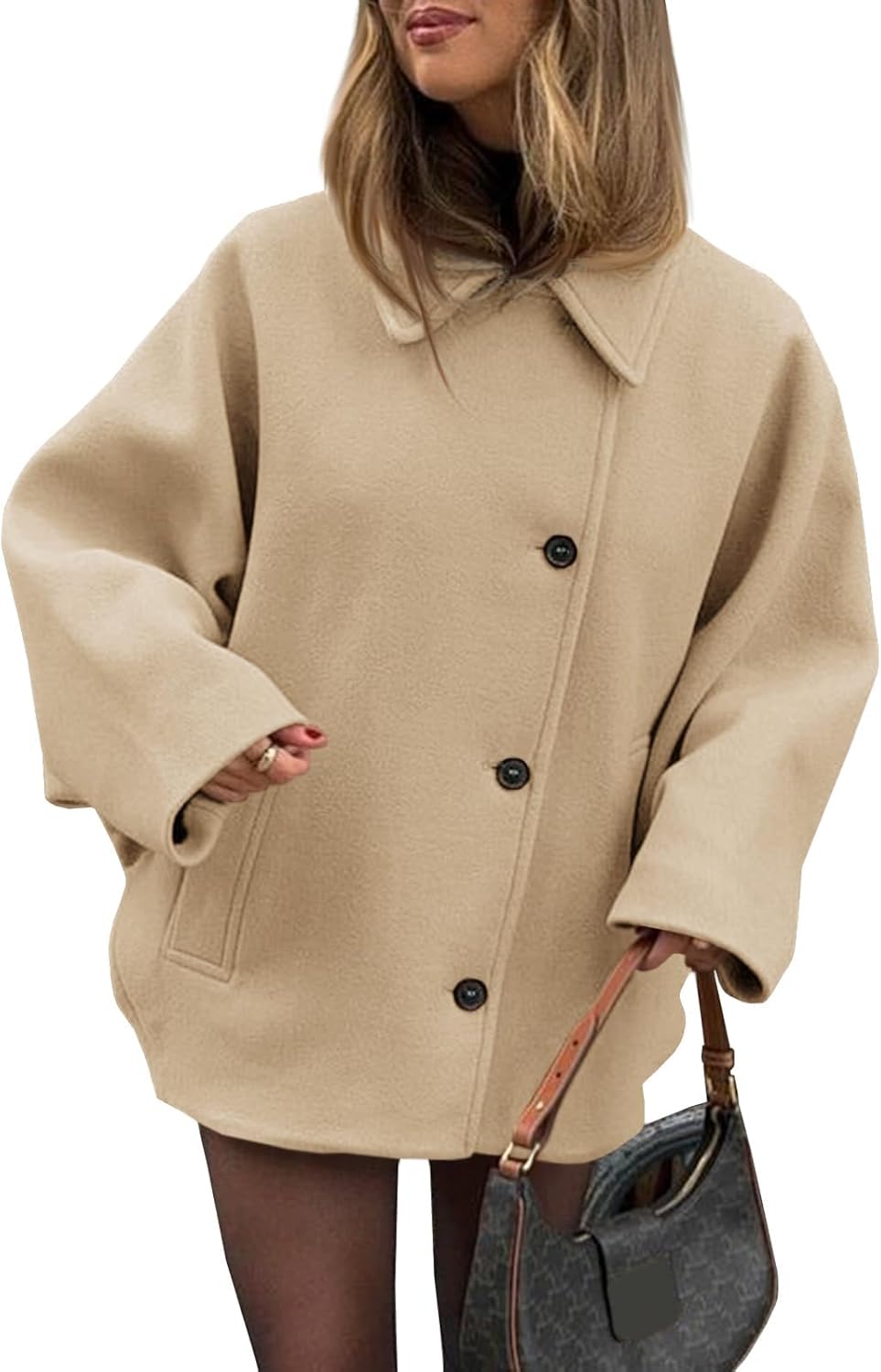 • Features: Loose fit style, front button up, soft fully lined, two side pockets that you can use to store your essentials, classic lapel collar, long sleeve, double breasted, soild color, drop shoulder, stylish short pea coat is an essential item in your wardrobe.