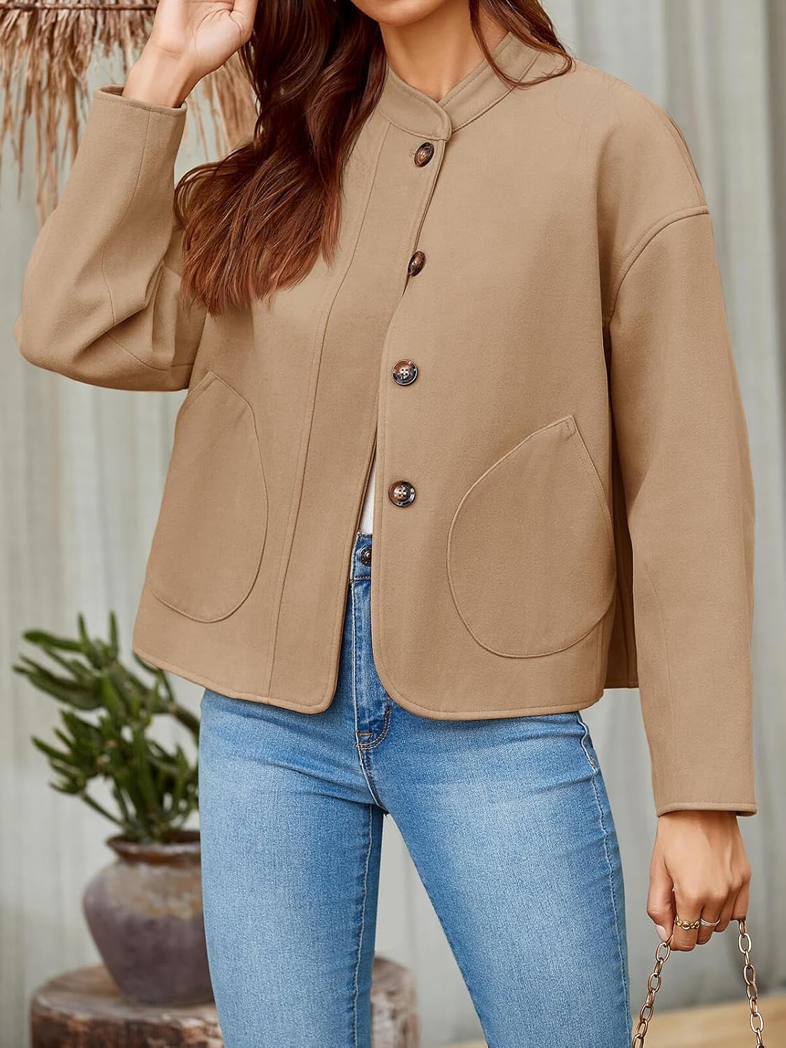 - Features: The short pea coat features a button down closure, allowing for easy on and off. It also has long sleeves to keep you warm during colder days. The pockets provide ample space for storing your essentials, such as keys, phone, or wallet.