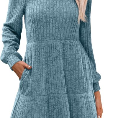Women’s Spring Sweater Dress V Neck Long Sleeve Ribbed Knit Tie Waist Slim Fit Bodycon Midi Dresses