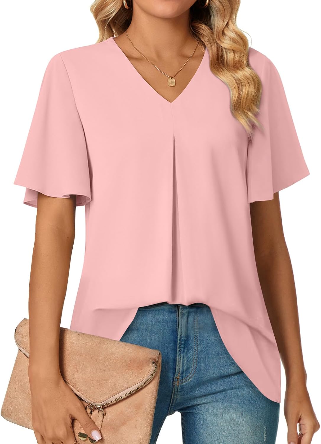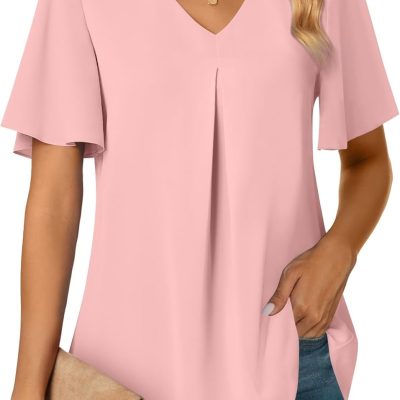 - Chic Design: Casual style T-shirts, loose fit blouse, v neck tops tee, pleated both front and back. The flutter short sleeves not only make you feel cool but also hide the upper arms in a flattering way and create a slimming look.